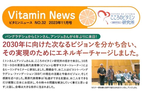 2023.03.30 ビタミンニュース NO.31 2023年4月号 Tweet Share Hatena Pocket RSS feedly Pin it 「NO.31の閲覧はこちらから」をクリックすると記事の詳細が見られます NO.31の閲覧はこちらから Tweet Share Hatena Pocket RSS feedly Pin it ビタミンニュース NO.30 2022年10月号前の記事 バングラデシュからミトンさん、アンジュさんが来日しまし…次の記事