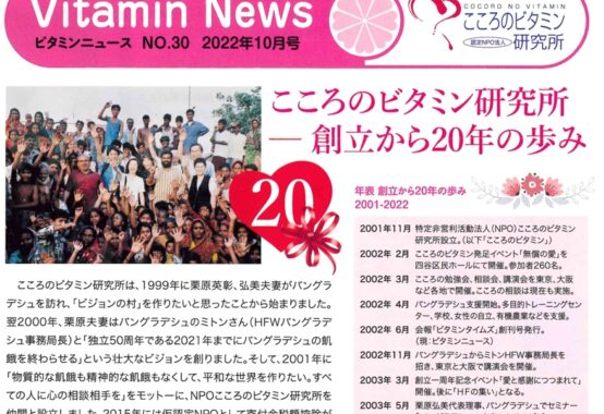 こころのビタミン研究所では、会報誌「ビタミンニュース」を年に2回程度発行しています。